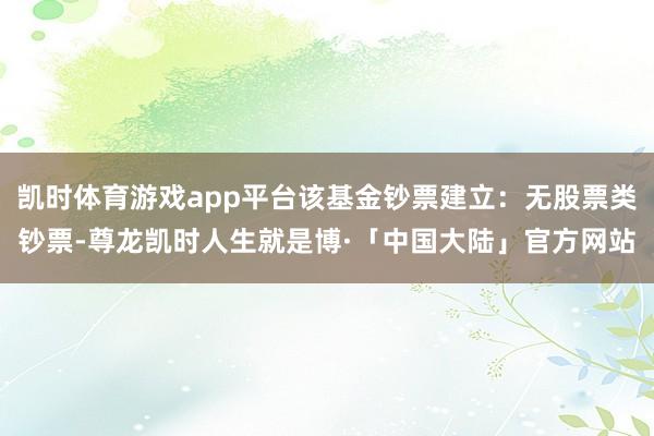 凯时体育游戏app平台该基金钞票建立:无股票类钞票-尊龙凯时人生就是博·「中国大陆」官方网站