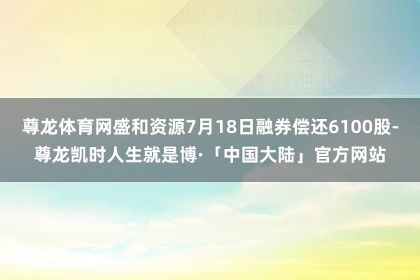 尊龙体育网盛和资源7月18日融券偿还6100股-尊龙凯时人生就是博·「中国大陆」官方网站